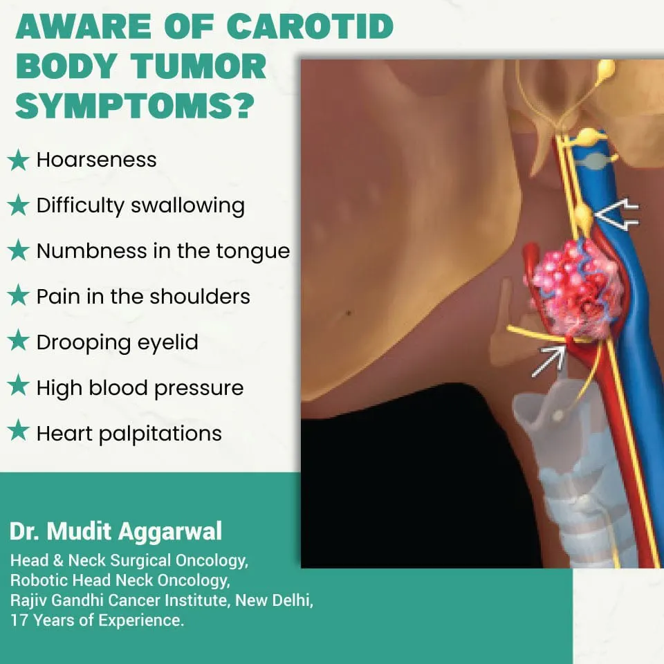 A carotid body tumor is a rare, usually benign (non-cancerous) growth that develops at the bifurcation of the carotid artery—where the artery splits in the neck to supply blood to the brain. Though slow-growing and typically painless, the tumor’s close location to major blood vessels and nerves means it must be handled with expert precision.