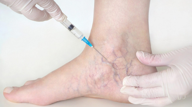 - A sclerosant solution is injected into smaller varicose or spider veins