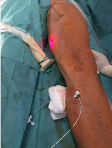 - A thin catheter is inserted into the diseased vein through a small needle stick