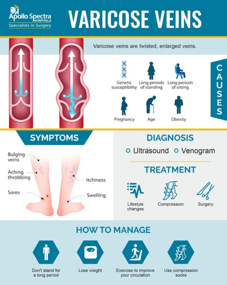 We explain veins like “one-way streets”—healthy veins carry blood upward, aided by valves. When those valves become leaky, blood flows in the wrong direction, builds up pressure, and stretches the veins, leading to varicosities.