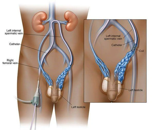 A no-incision treatment for varicoceles (enlarged veins in the scrotum) which can cause dull pain or contribute to male infertility. Through a tiny catheter, we block the blood flow in the problem veins, relieving scrotal discomfort and often improving fertility without the need for open surgery.